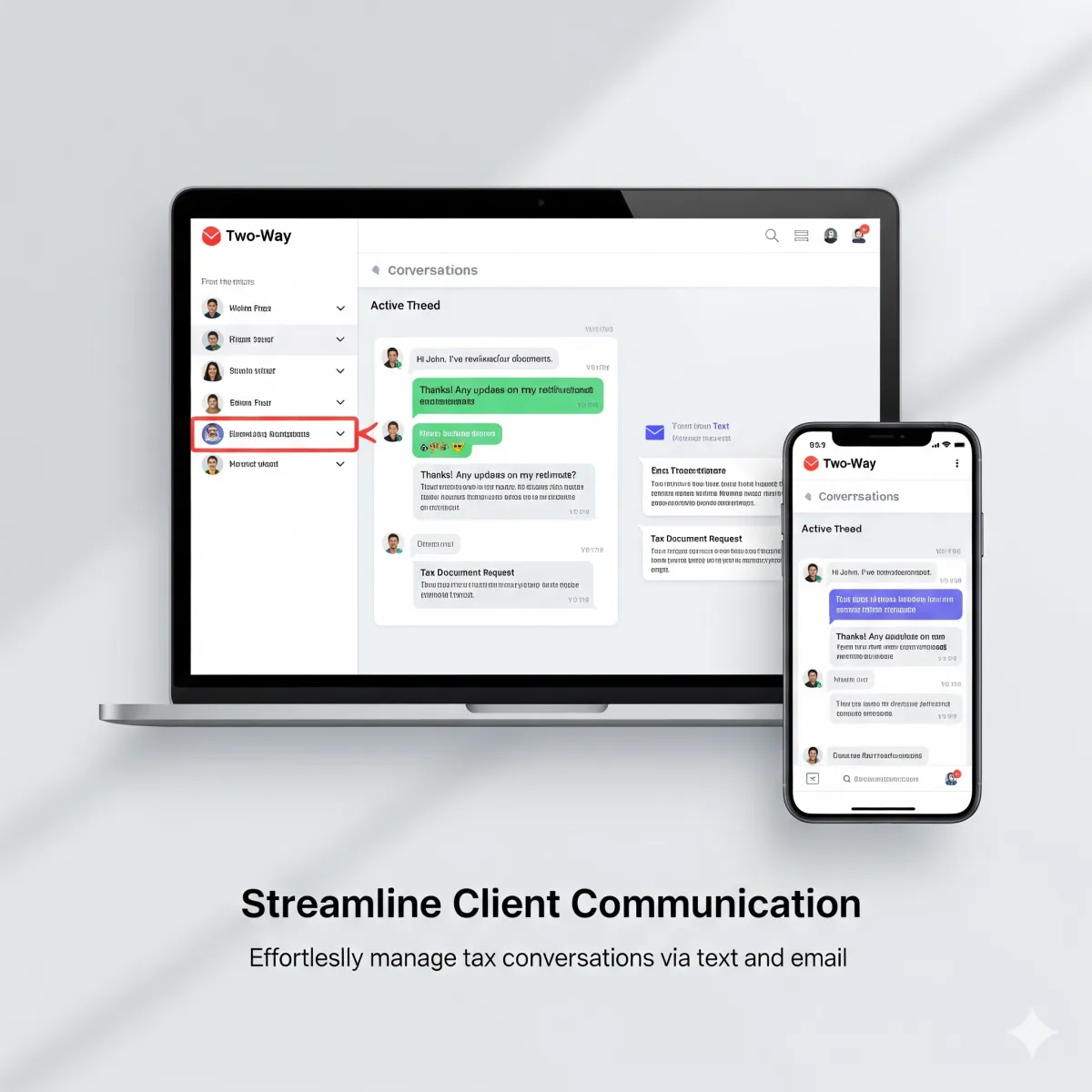 Templates & Automation: Use pre-built "Tax Tip" templates or "Document Request" snippets to reply in seconds.