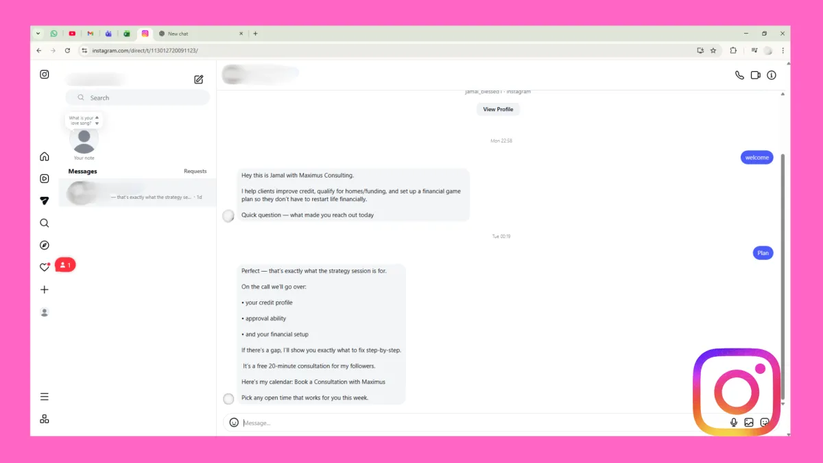 Keyword-Triggered Conversations: When someone DMs a keyword like “PRICING,” “BOOK,” or “TAXES,” they instantly receive the exact message, link, or offer you choose.