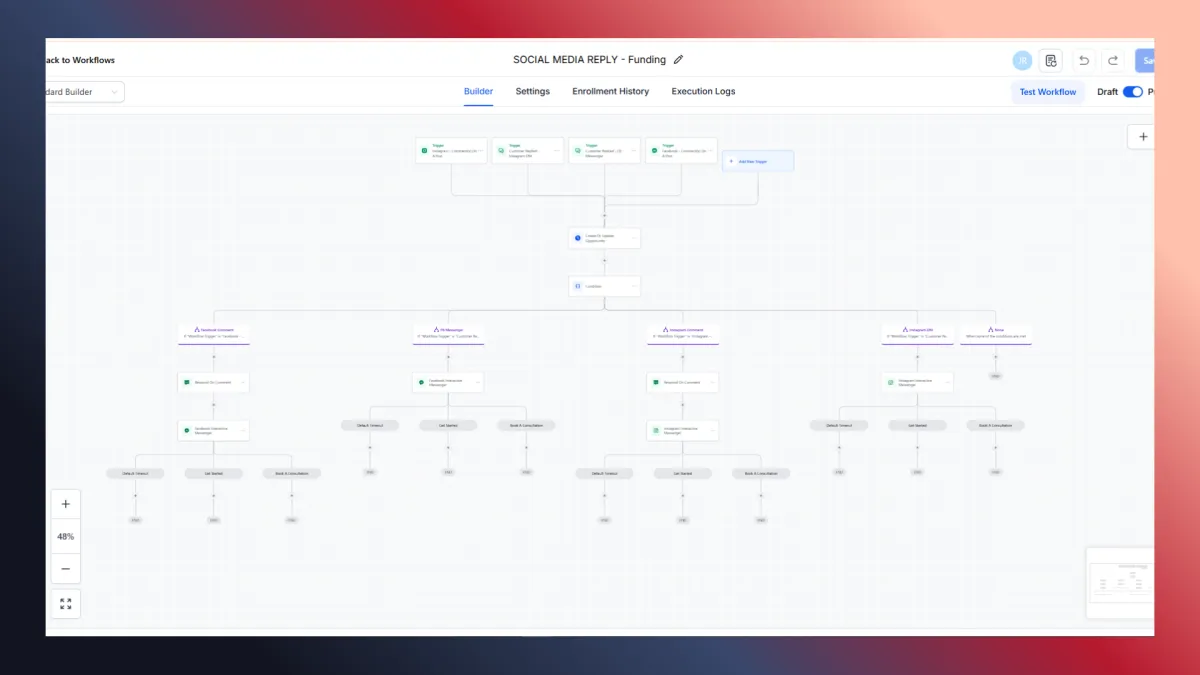 Trigger Replies with Simple Keywords: When a prospect DMs words like “TAXES,” “PRICING,” or “BOOK,” your CRM instantly launches the right response—no manual work.