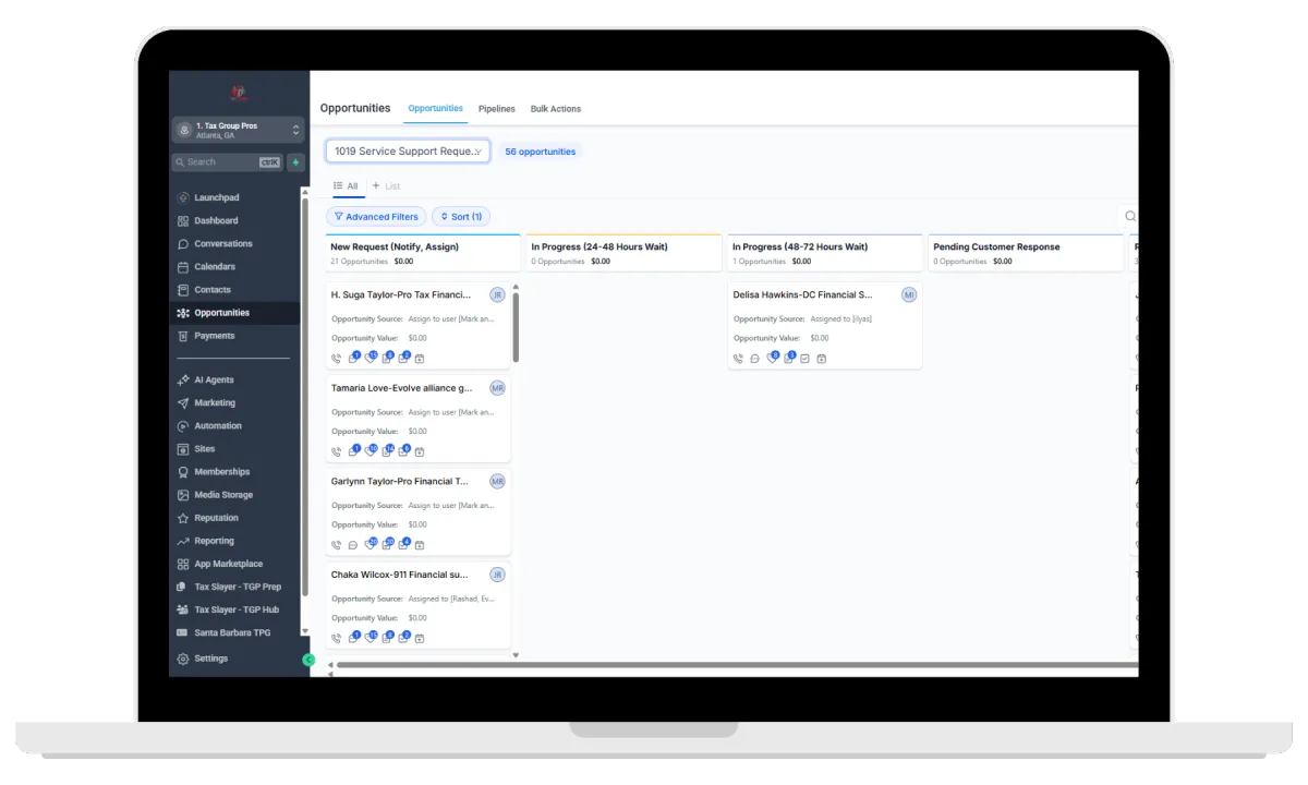 Gain 100% visibility into your revenue. From initial lead to filed return, manage every stage of your tax firm’s growth with our Automated Opportunity Pipeline.