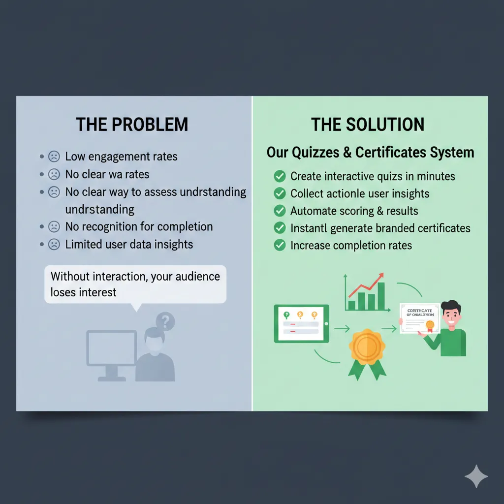 Turn passive followers into "Certified Clients." Use smart quizzes to qualify leads, gamify your tax courses, and award branded certificates that prove your expertise.