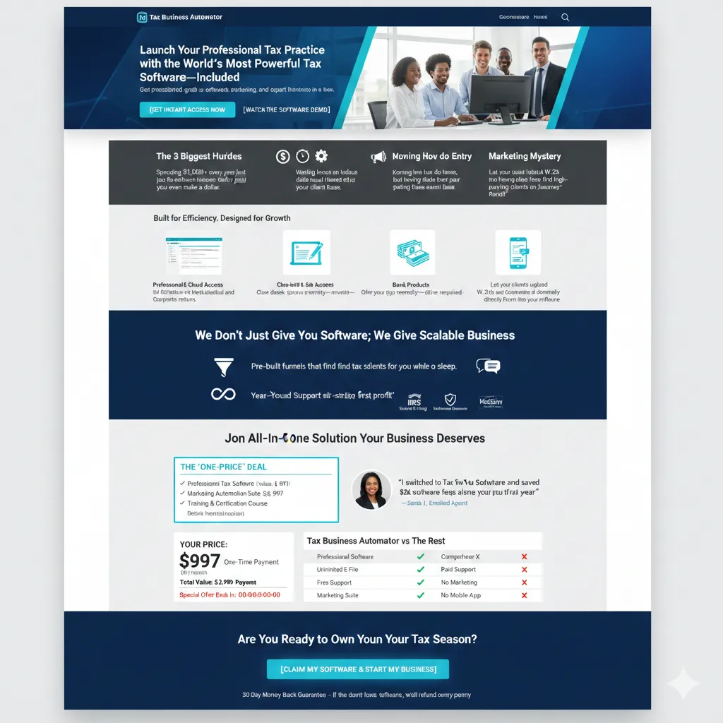 Stop paying thousands for software licenses. Get professional-grade tax software, automated marketing, and expert training in one complete business-in-a-box.